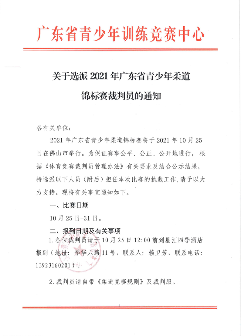 关于选派2021年广东省青少年柔道锦标赛裁判员的通知