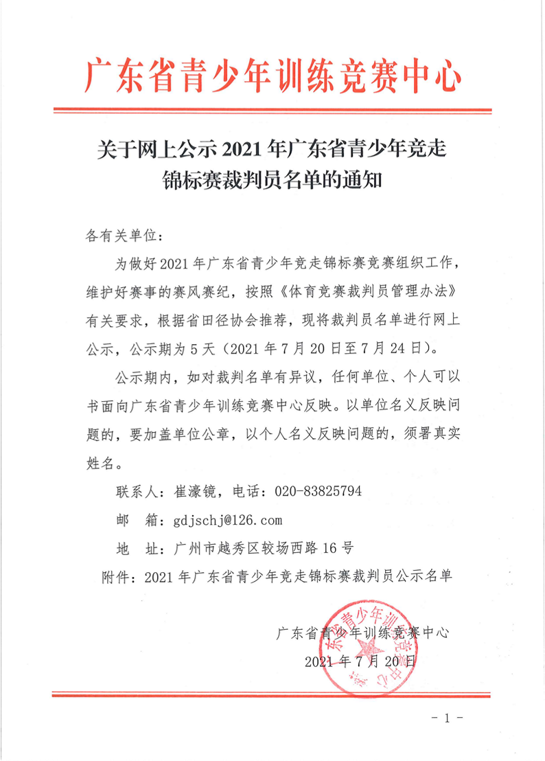 关于网上公示2021年广东省青少年竞走锦标赛裁判员名单的通知 来源: 发布时间:2021-07-20 16:01:33 浏览次数: 次 【字体:小 大】 终审:崔濠镜 点赞 收藏 分享到: 【打印正文】