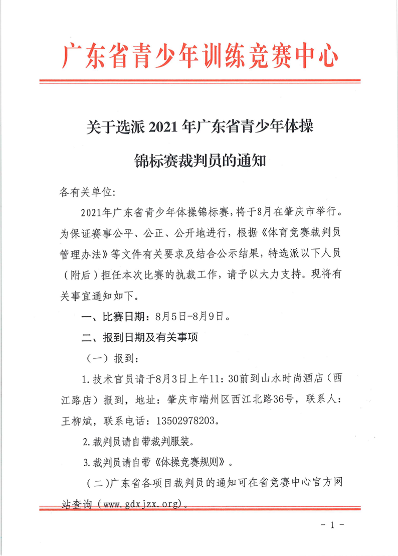 关于选派2021年广东省青少年体操锦标赛裁判员的通知