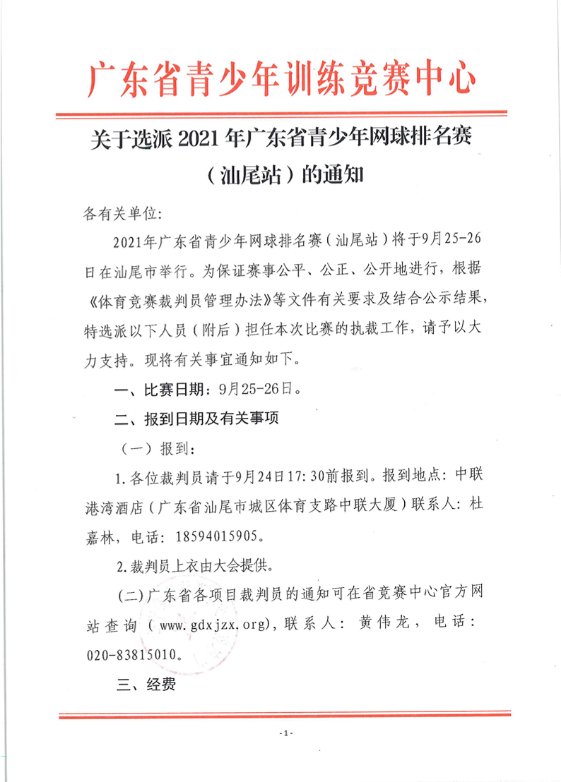关于选派2021年广东省青少网球排名赛(汕尾站)裁判员的通知 来源: 发布时间:2021-09-23 17:43:33 浏览次数: 次 【字体:小 大】 终审:HYP 点赞 收藏 分享到: 【打印正文】