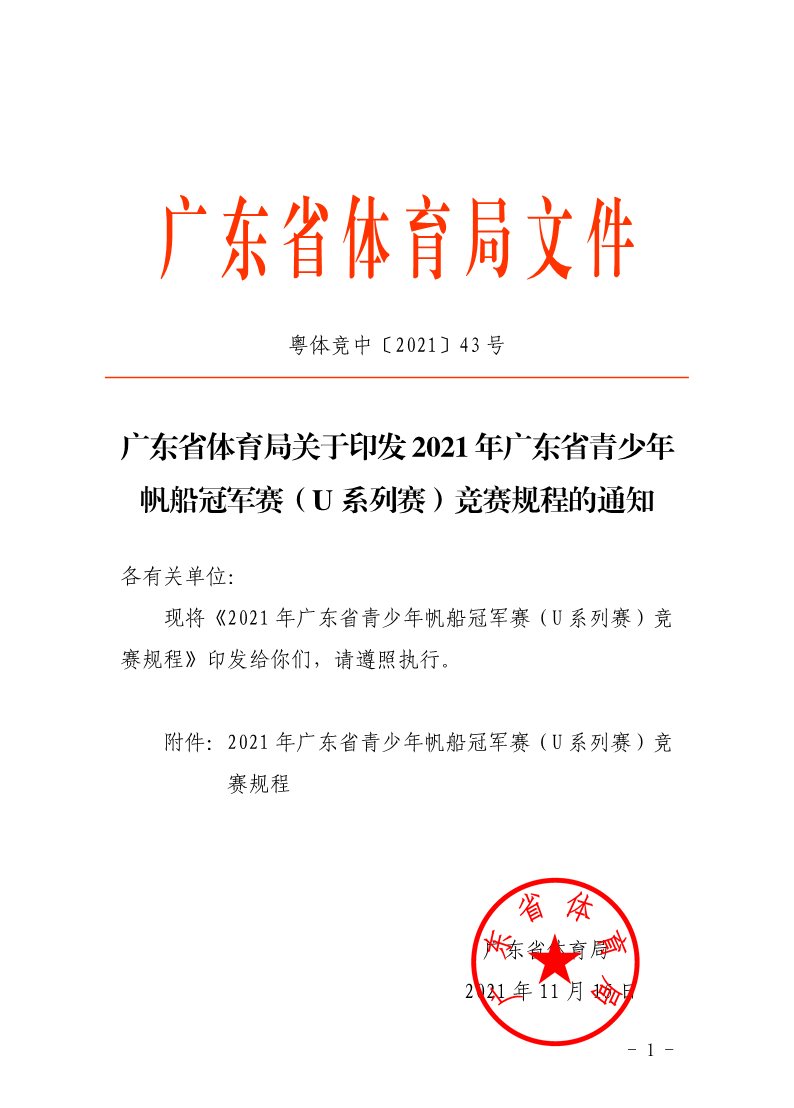 广东省体育局关于印发2021年广东省青少年帆船冠军赛(U系列赛)竞赛规程的通知 来源: 发布时间:2021-11-15 10:36:53 浏览次数: 次 【字体:小 大】 终审:袁敏嘉 点赞 收藏 分享到: 【打印正文】