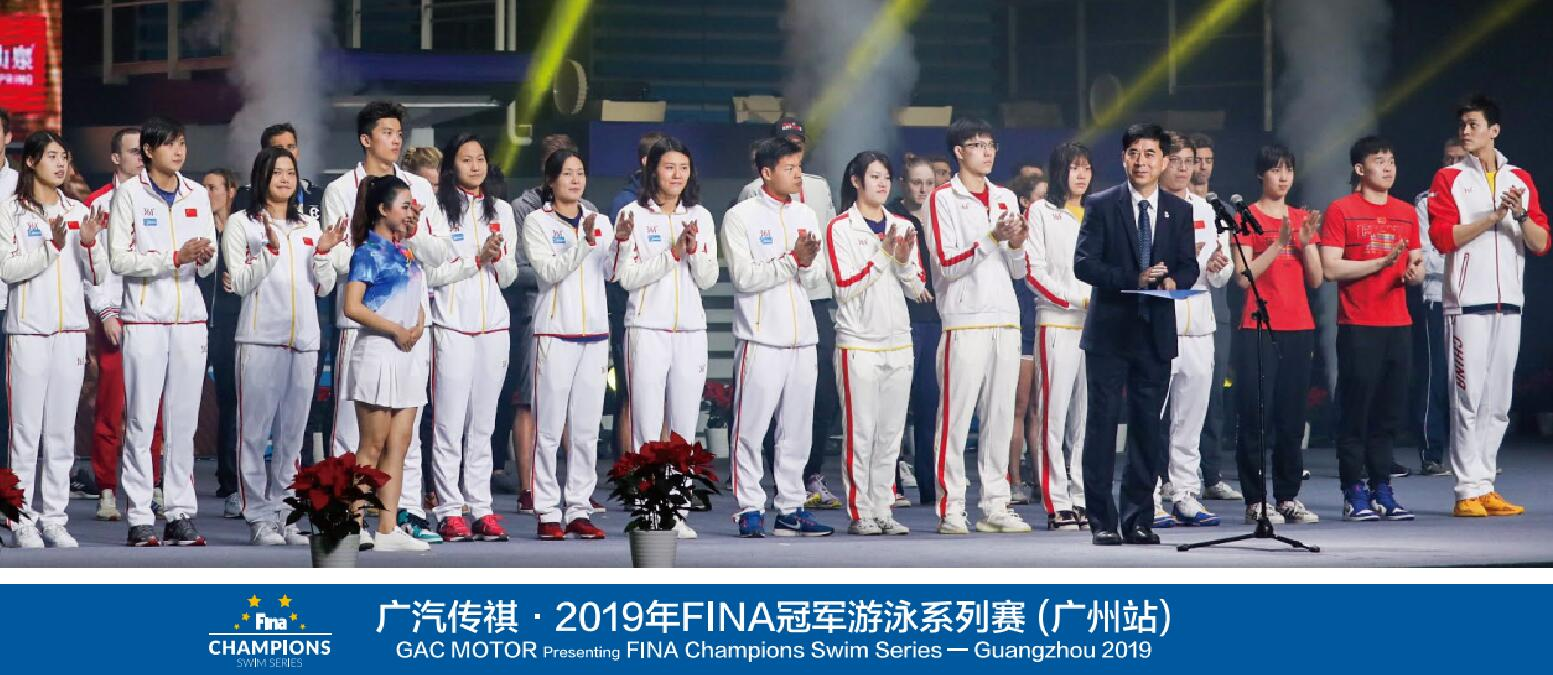 广汽传祺·2019年国际泳联(FINA)冠军游泳系列赛(广州站)于4月28日晚在广东奥林匹克体育中心游泳跳水馆圆满落幕。中国名将孙杨28日在赛上展示了强大的实力,在1小时内接连夺得男子400米和200米自由泳的冠军,其中400米还创造了今年世界最好成绩。另一位奥运冠军叶诗文以个人最好成绩问鼎女子200米蛙泳。这样,中国游泳队在历史上全球首场FINA冠军游泳系列赛中以10冠的成绩收官,孙杨、叶诗文、徐嘉余和傅园慧均成为双冠王。此外,由中国队何峻毅、英国队普劳德、戴维斯与荷兰队克罗莫维德尤尤组合的男女混合泳4*100米接力队伍获得冠军。瑞典“游泳公主”舍斯特伦以4冠成为多金王,匈牙利“铁娘子”霍苏夺得3项冠军。