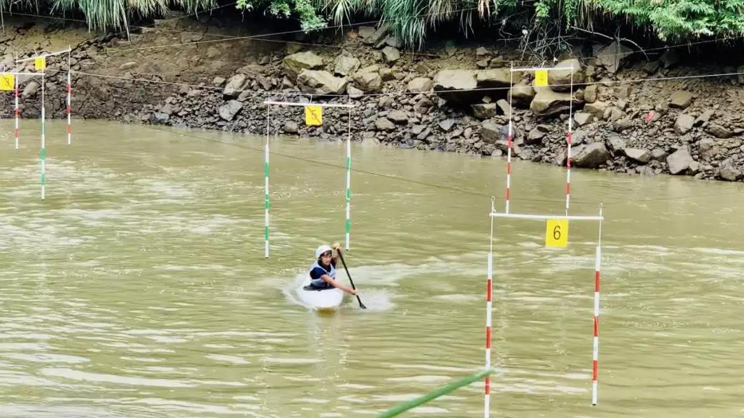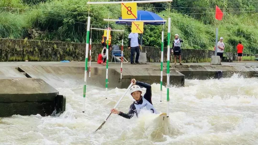 专业的激流回旋比赛需要在湍急的人工航道上设立旗门,要求运动员驾驶皮划艇顺流而下,以事先规定的顺序闯过所有旗门,最后计算时间,用时短且无犯规者取胜。
