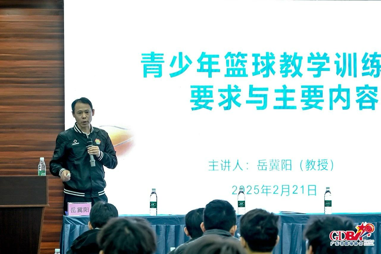 其中第一堂理论课,由中国篮球协会教练委员会委员、广州体育学院教务处副处长岳冀阳教授讲授《青少年篮球教学训练的要求与内容》。在理论知识板块,岳教授凭借着深厚的专业知识和丰富的实践经验,将篮球运动的基本规则、精妙复杂的战术体系,以及针对青少年身心特点的训练方法,以通俗易懂的方式传授给学员。这些理论知识,犹如一把把钥匙,为学员们打开了篮球世界的智慧之门。
