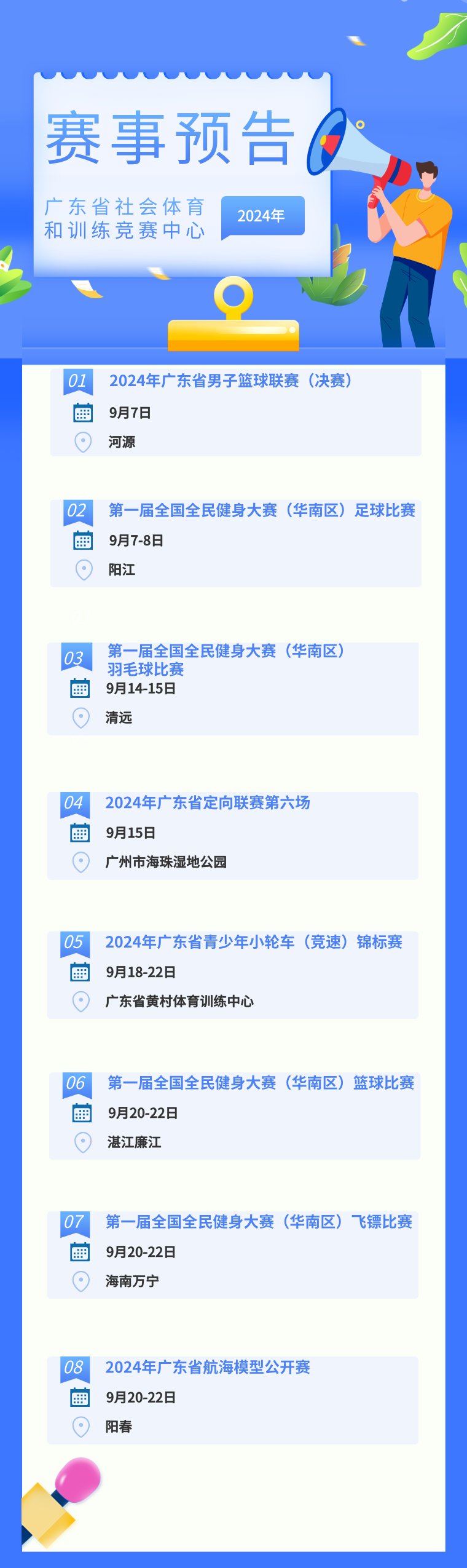 粤赛连连看,精彩不停歇:首届全国全民健身大赛(华南区)健身气功比赛在海口落幕;300多名“小醒狮”齐聚狮王故里,开擂争霸,燃爆夏日激情;2024年全国无线电测向锦标赛开赛,广东健儿勇创佳绩;南粤古驿道定向大赛再度跑进香港,体育搭台奏响粤港澳大湾区建设强音……8月底,广东健儿在多项全国赛事、省内赛事上取得佳绩,用汗水和努力为夏天留下一段关于体育的美好回忆。