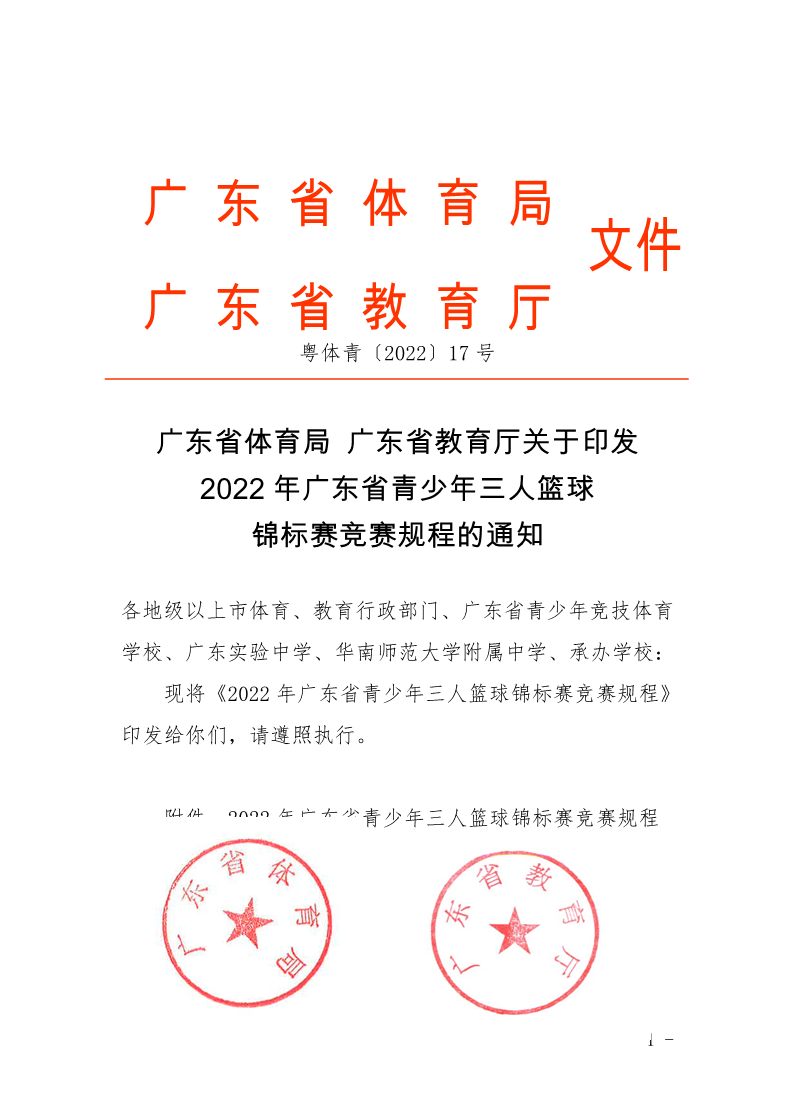 关于印发2022年广东省青少年三人篮球锦标赛竞赛规程的通知