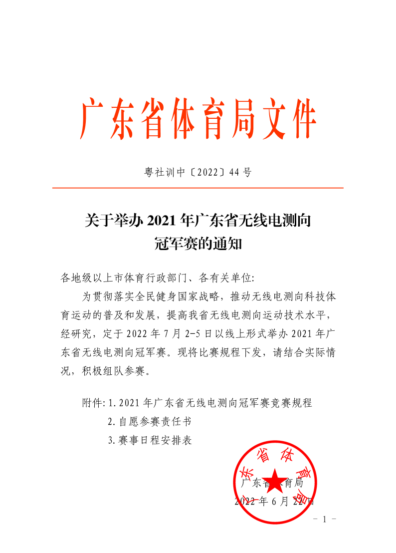关于举办2021年广东省无线电测向冠军赛的通知