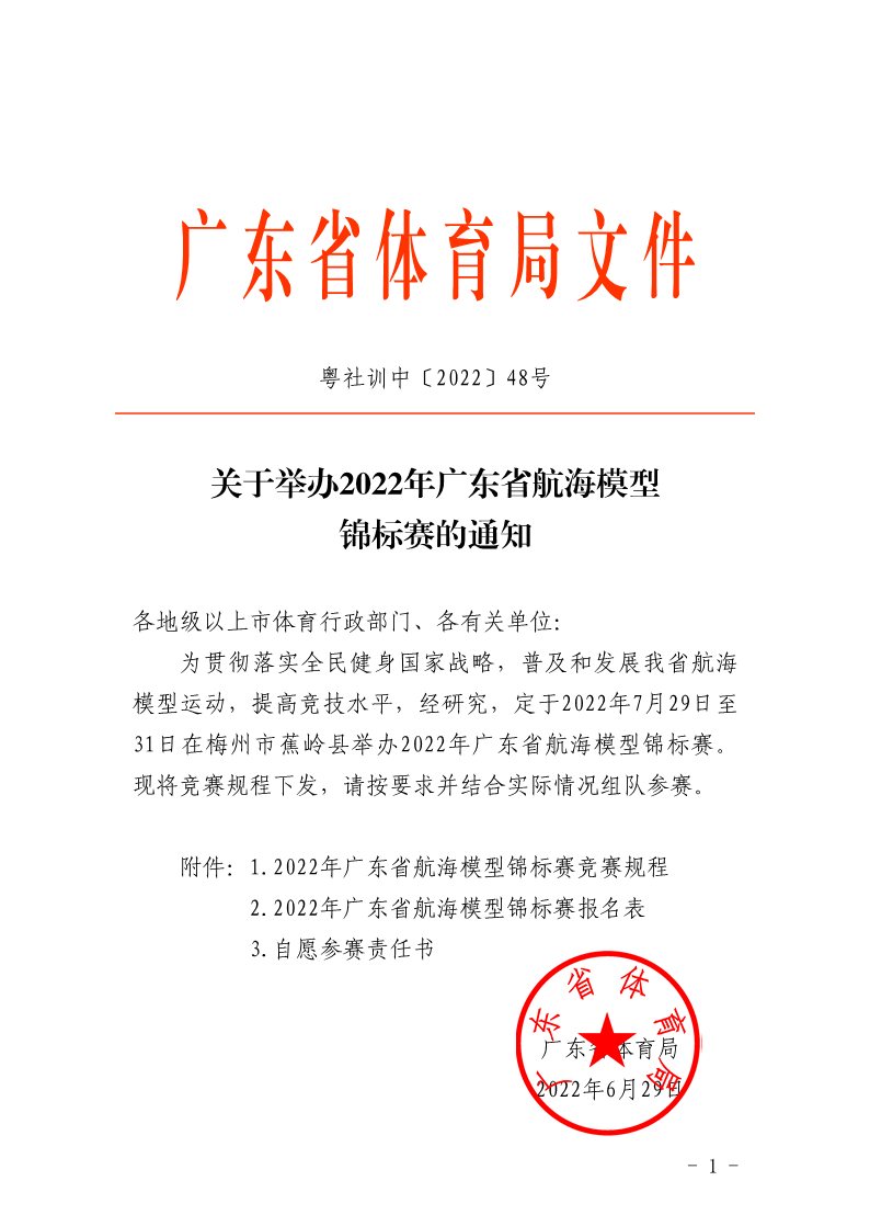关于举办2022年广东省航海模型锦标赛的通知