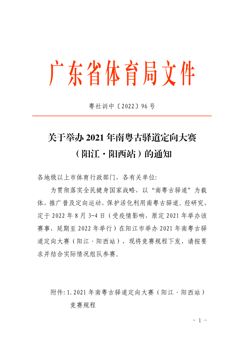 关于举办2021年南粤古驿道定向大赛(阳江·阳西站)的通知