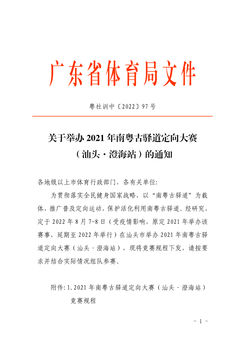 关于举办2021年南粤古驿道定向大赛(汕头·澄海站)的通知