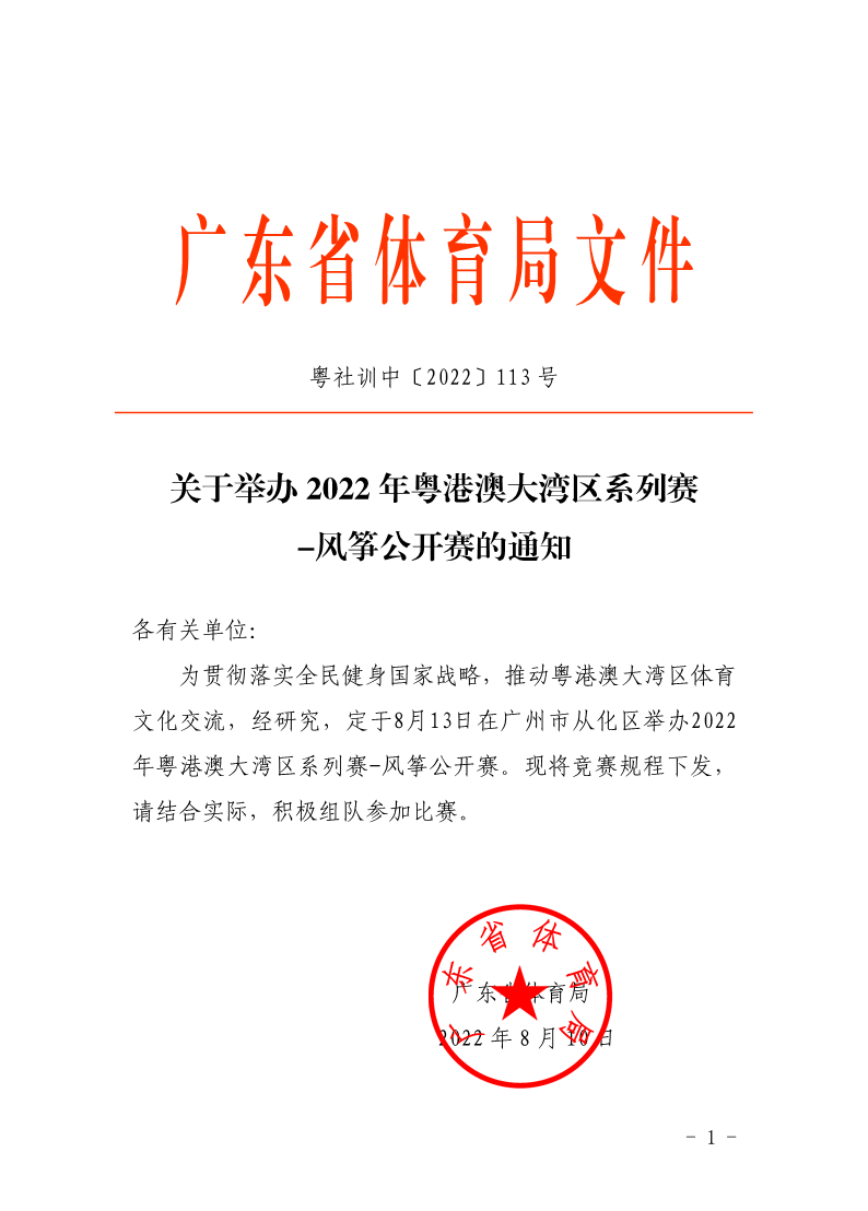 关于举办2022年粤港澳大湾区系列赛-风筝公开赛的通知