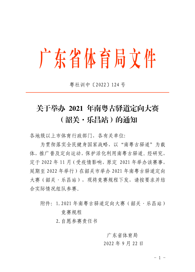 关于举办2021年南粤古驿道定向大赛(韶关·乐昌站)的通知