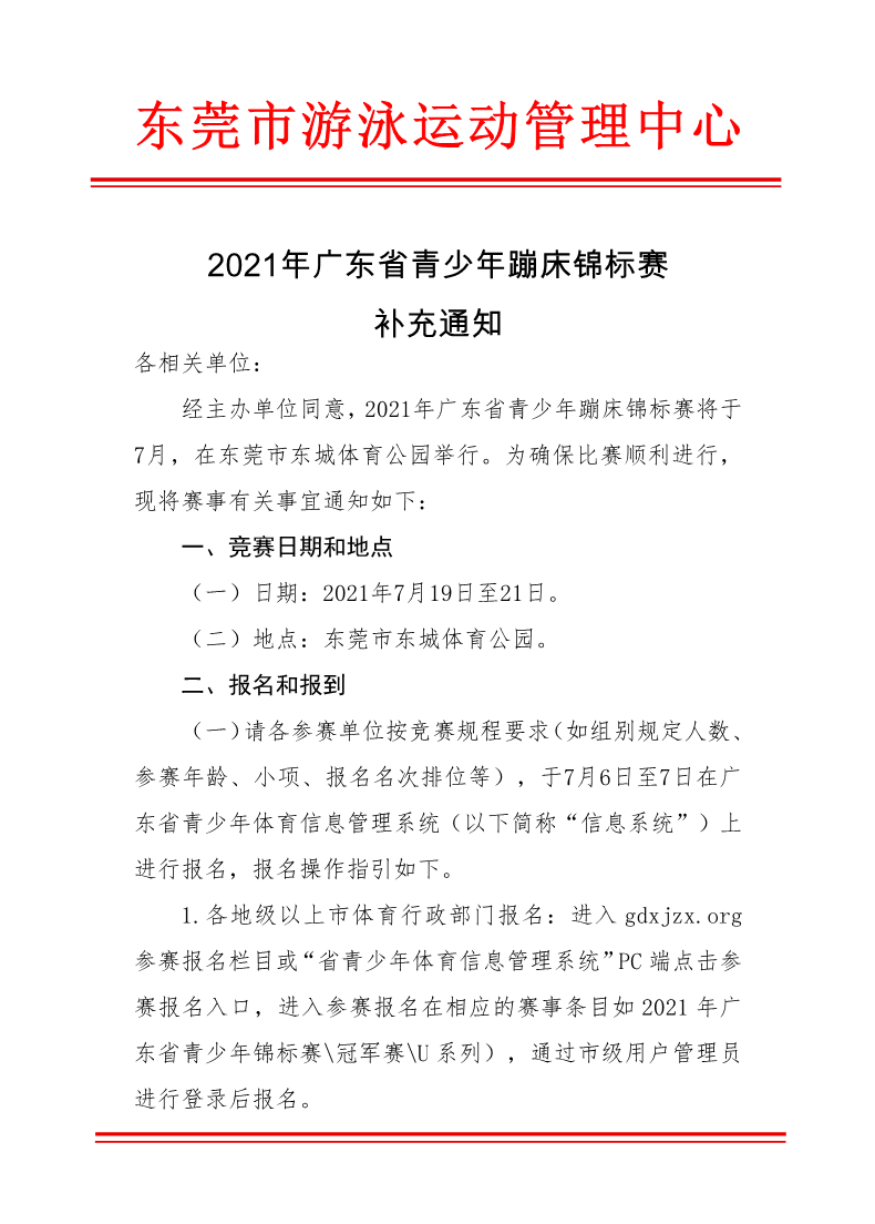 2021年广东省青少年蹦床锦标赛补充通知