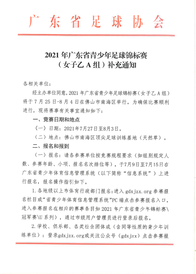 2021年广东省青少年足球锦标赛(女子乙A组)补充通知(以此份为准) 来源: 发布时间:2021-07-09 12:08:47 浏览次数: 次 【字体:小 大】 终审:HYP 点赞 收藏 分享到: 【打印正文】