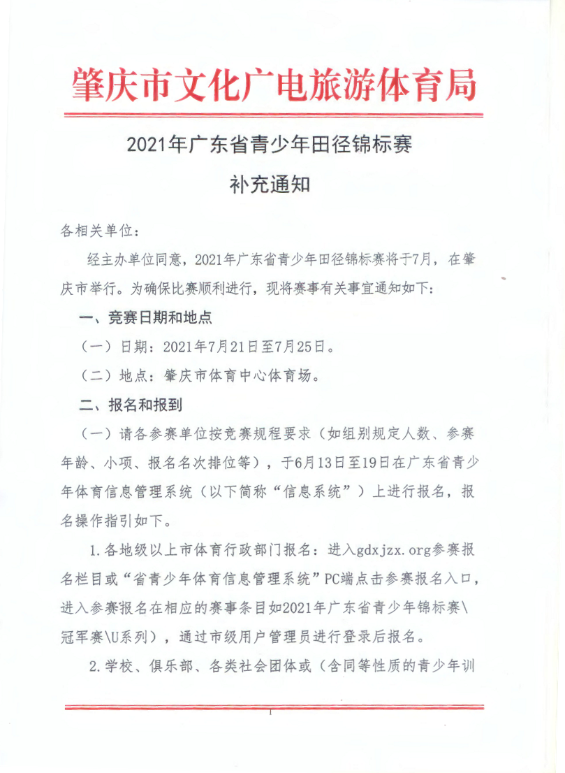 2021年广东省青少年田径锦标赛补充通知