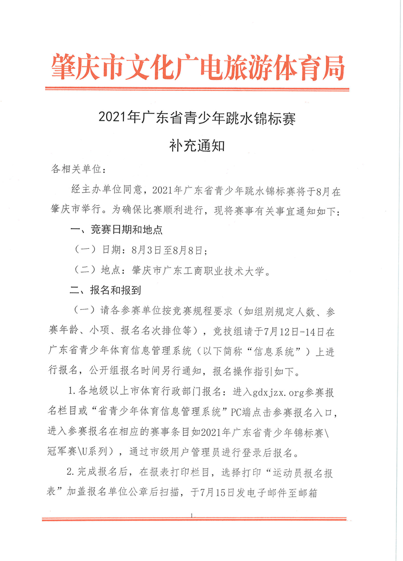 2021年广东省青少年跳水锦标赛补充通知
