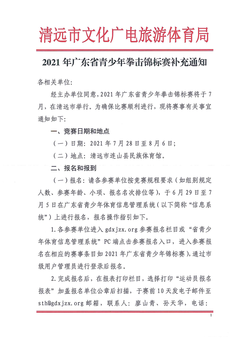 2021年广东省青少年拳击锦标赛补充通知
