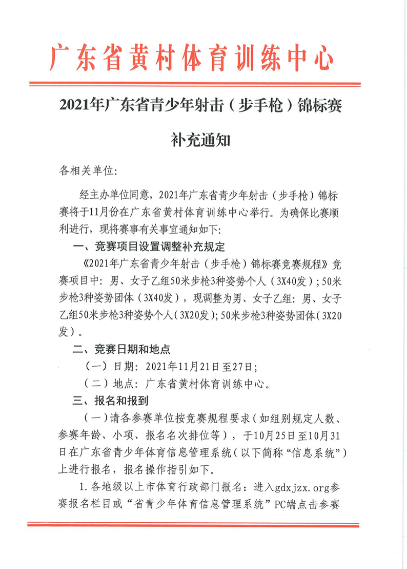 2021年广东省青少年射击(步手枪)锦标赛补充通知