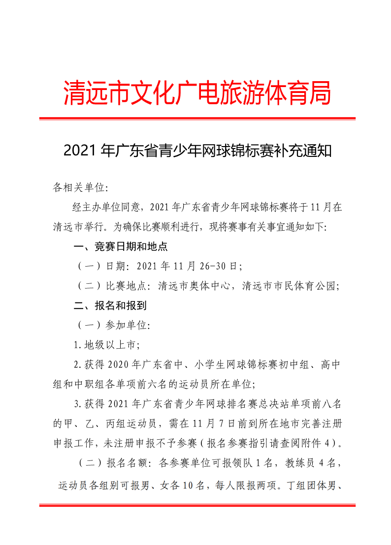 2021年广东省青少年网球锦标赛补充通知
