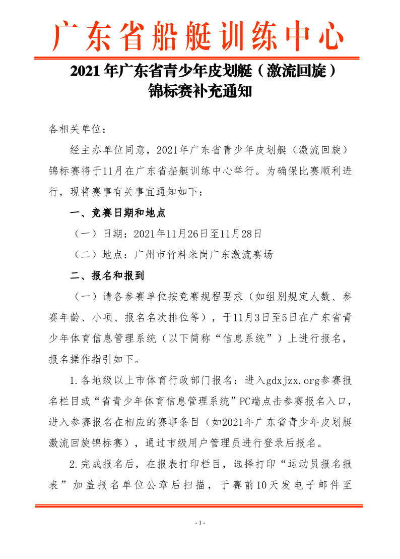 2021年广东省皮划艇(激流回旋)锦标赛补充通知
