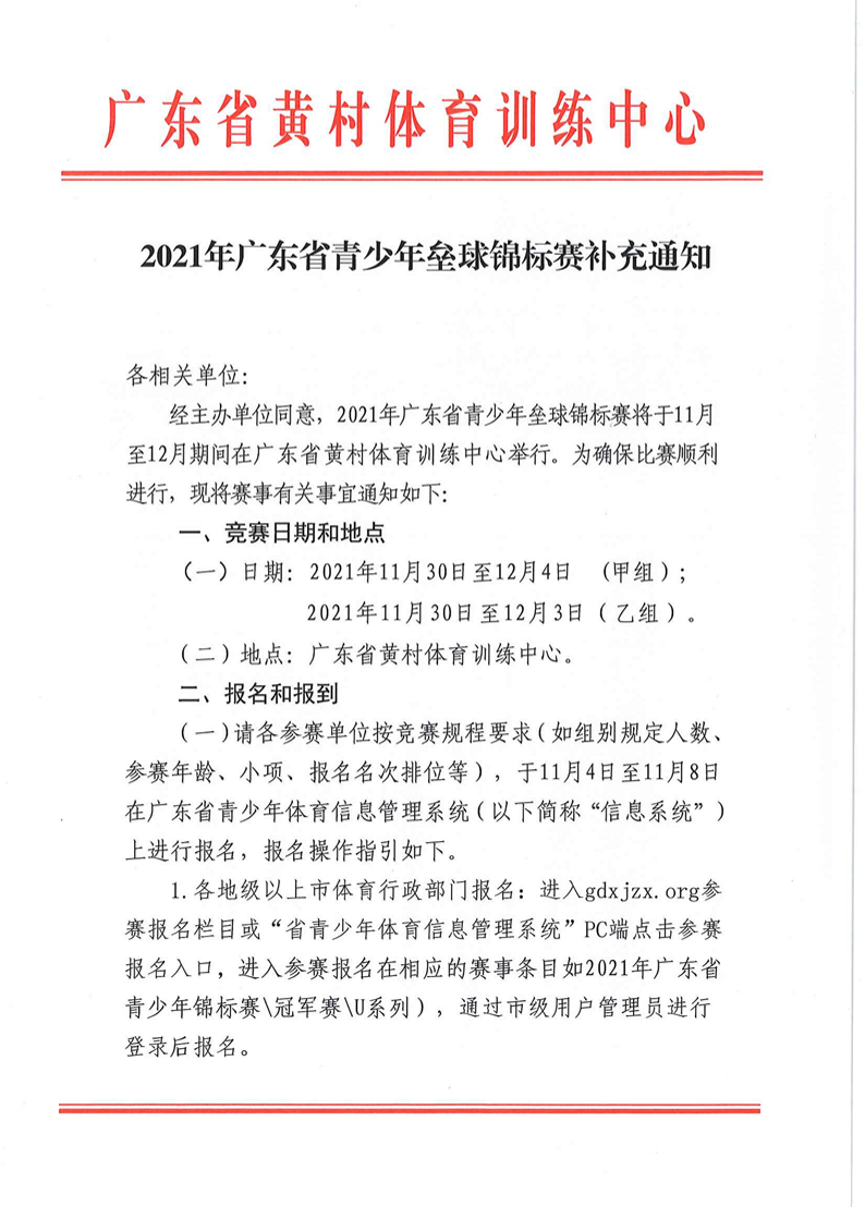 2021年广东省青少年垒球锦标赛补充通知