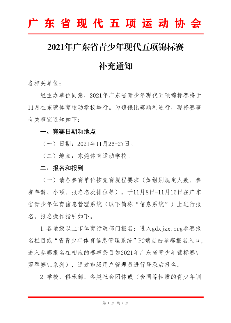 2021年广东省青少年现代五项锦标赛补充通知