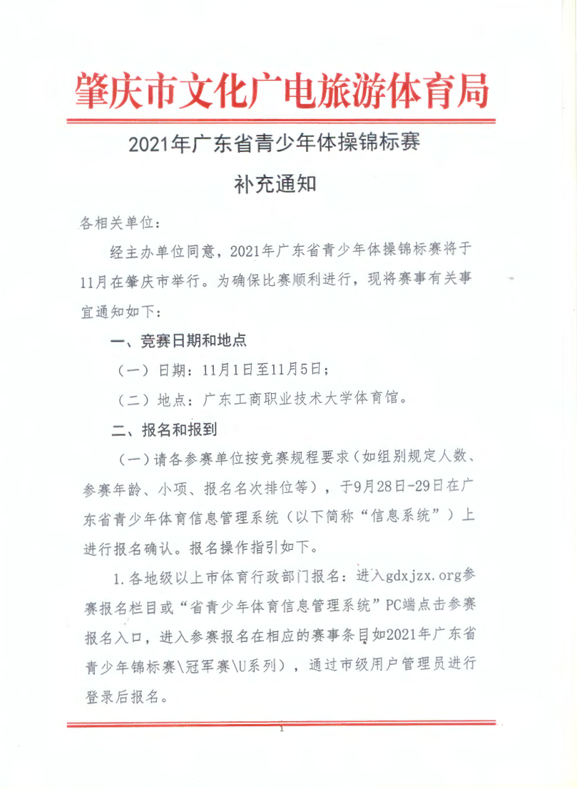 2021年广东省青少年体操锦标赛补充通知