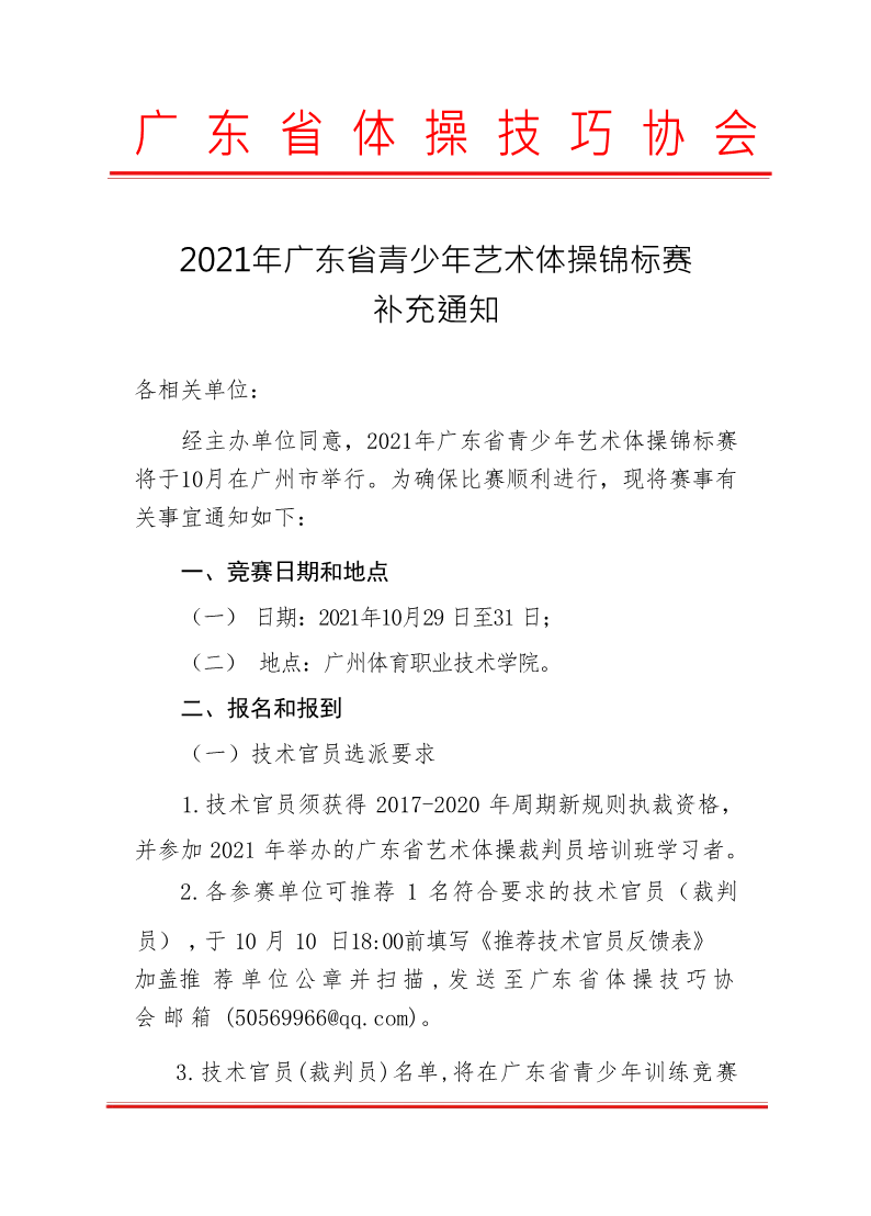 2021年广东省青少年艺术体操锦标赛补充通知