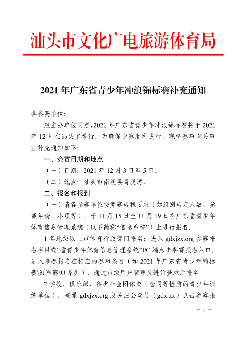 2021年广东省青少年冲浪锦标赛补充通知