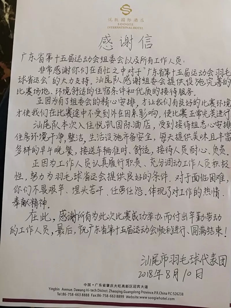 和热情招待的感谢