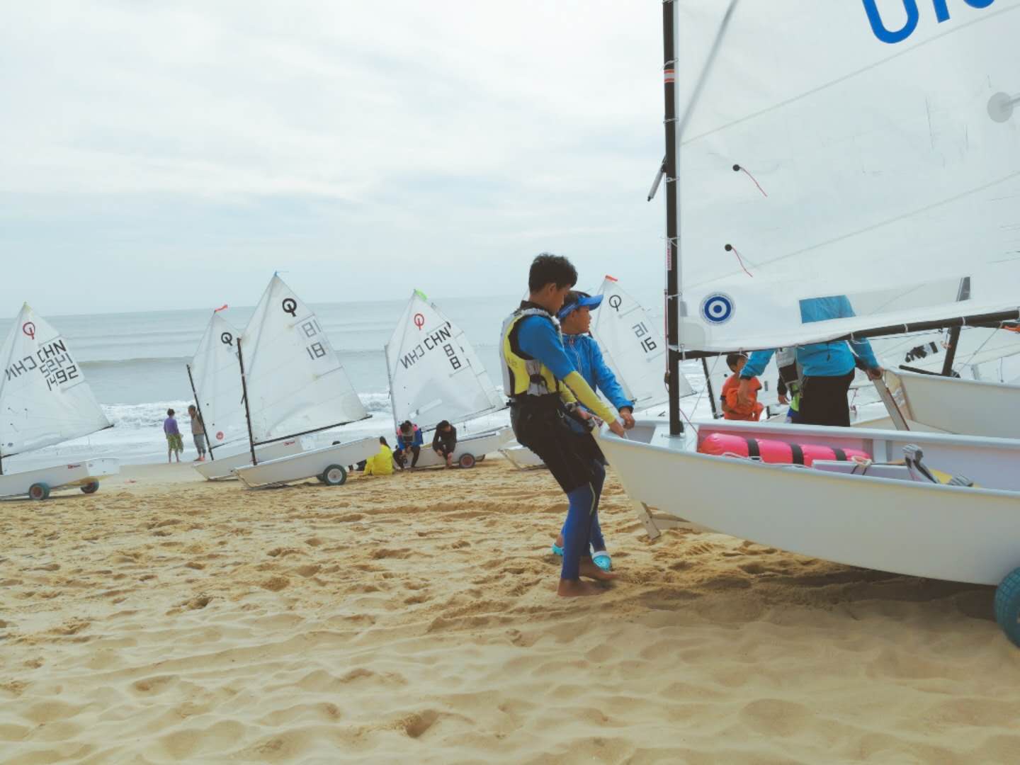 带着他们的帆船帆板,