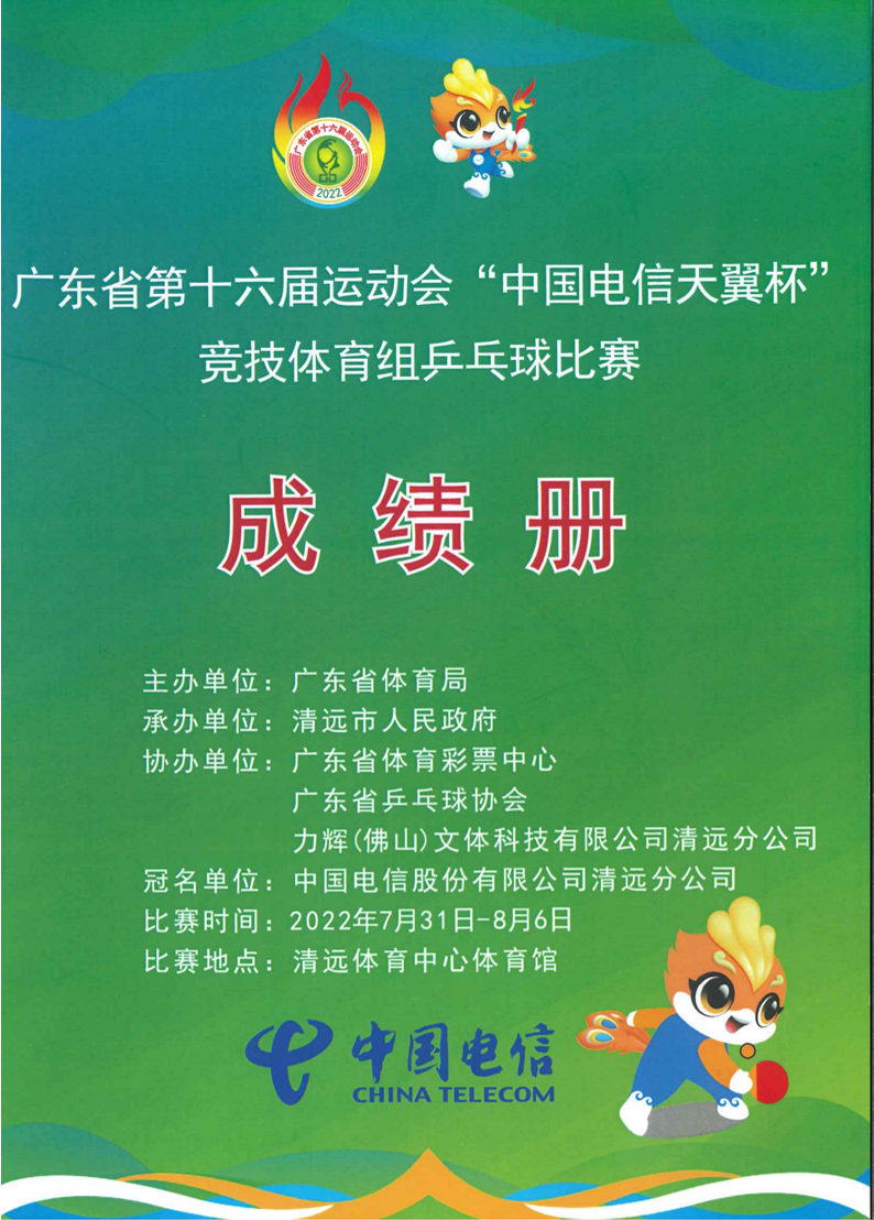 广东省第十六届运动会竞技体育组乒乓球比赛成绩册