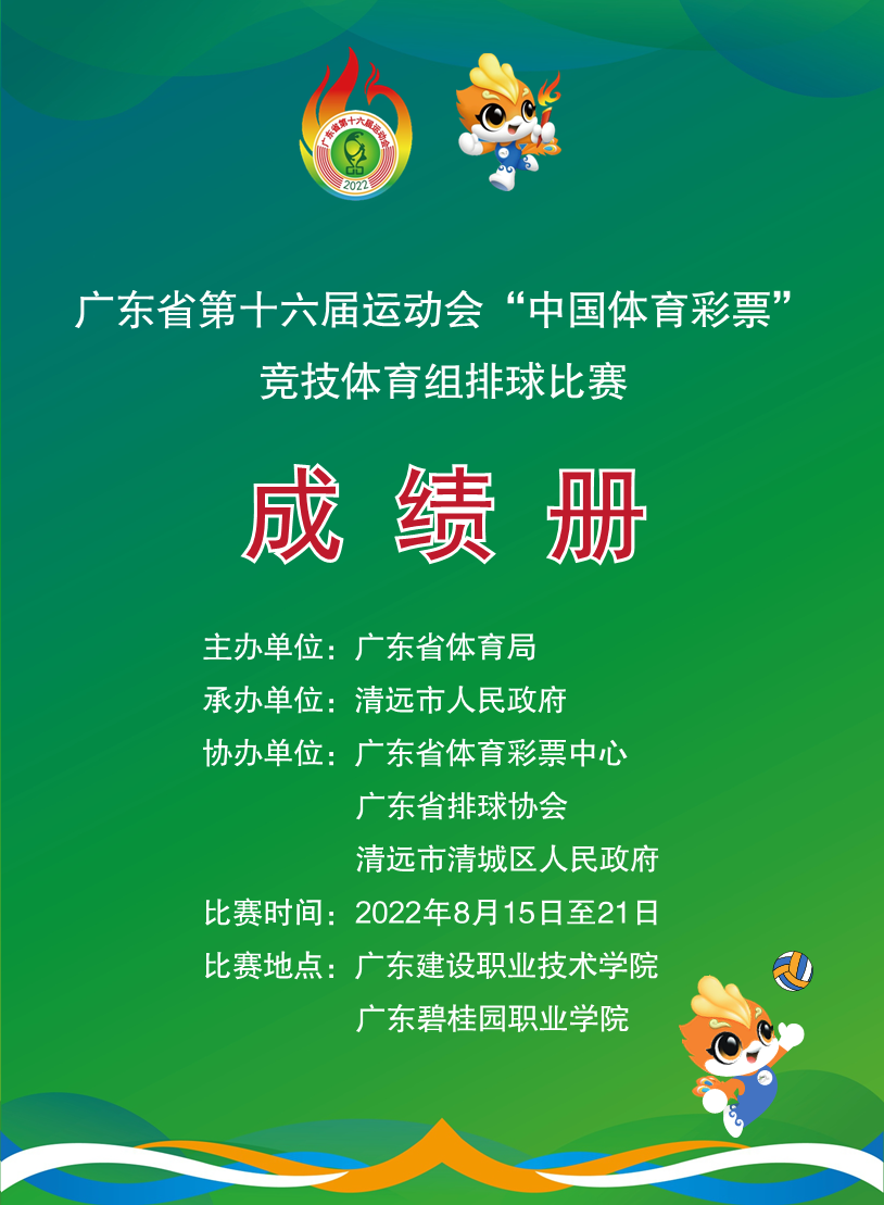 广东省第十六届运动会竞技体育组男子排球比赛成绩册
