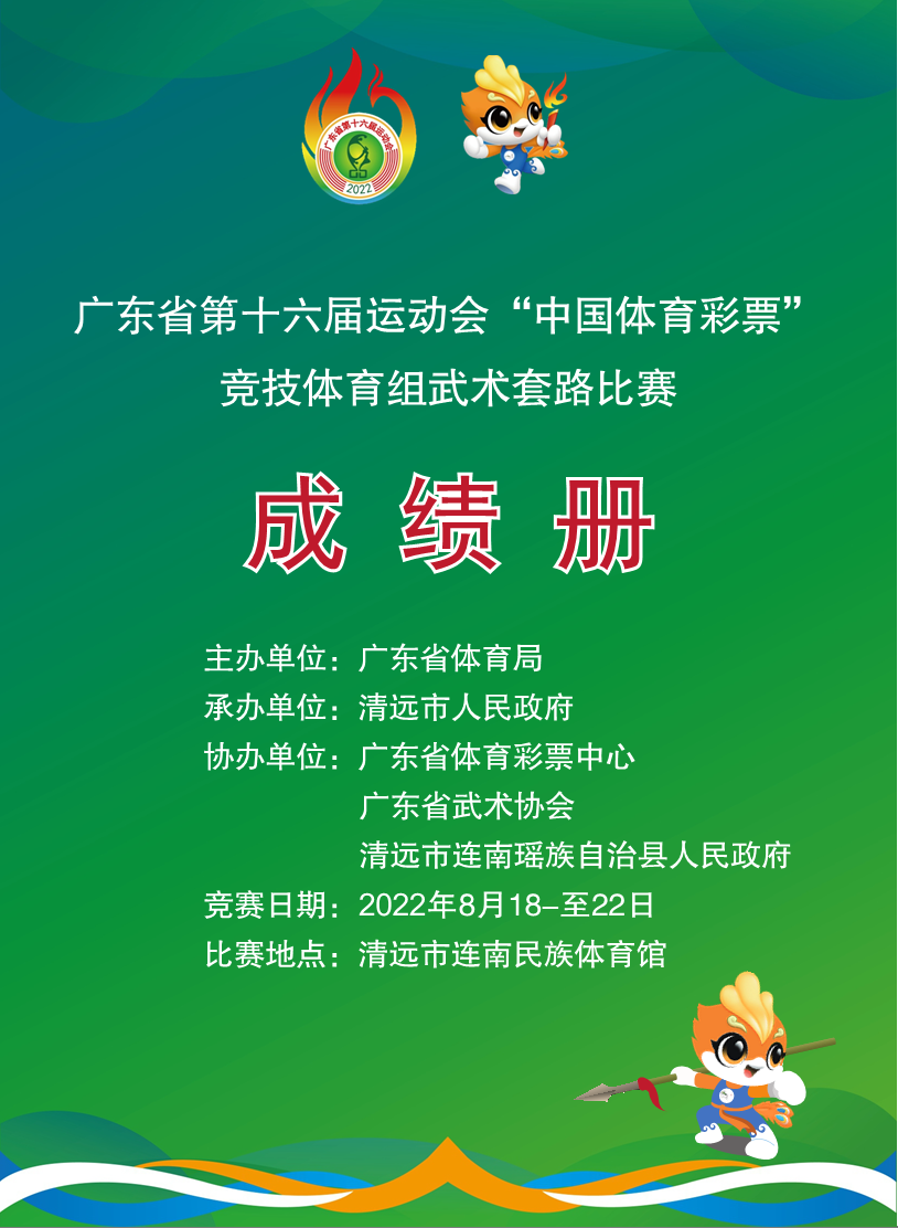 广东省第十六届运动会“中国体育彩票”竞技体育组武术套路比赛成绩册 来源: 发布时间:2022-08-24 16:22:48 浏览次数: 次 【字体:小 大】 终审:崔濠镜 点赞 收藏 分享到: 【打印正文】