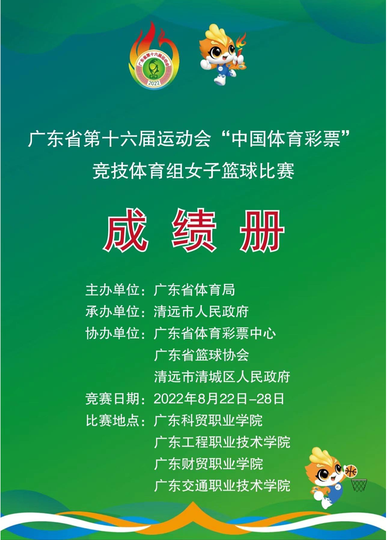 广东省第十六届运动会竞技体育组女子篮球比赛成绩册