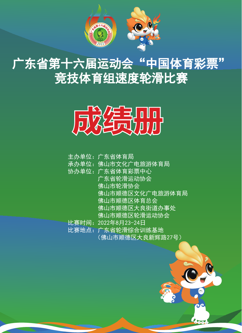 广东省第十六届运动会竞技体育组速度轮滑比赛成绩册