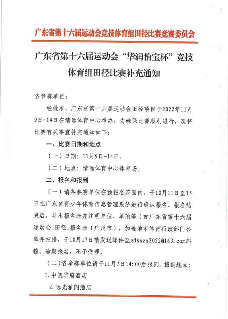 广东省第十六届运动会“华润怡宝杯”竞技体育组田径比赛补充通知 来源: 发布时间:2022-10-08 10:56:29 浏览次数: 次 【字体:小 大】 终审:崔濠镜 点赞 收藏 分享到: 【打印正文】