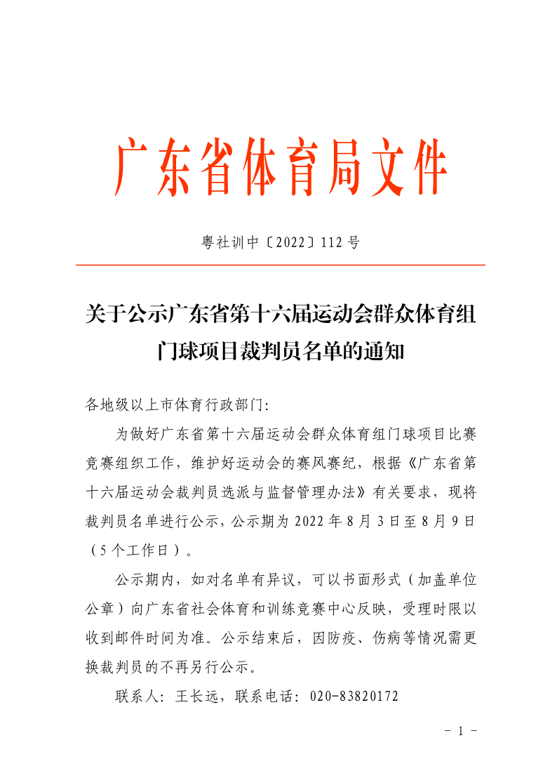 关于广东省第十六届运动会群众体育组门球比赛裁判员名单公示的通知 来源: 发布时间:2022-08-04 11:31:23 浏览次数: 次 【字体:小 大】 终审:社体部 点赞 收藏 分享到: 【打印正文】