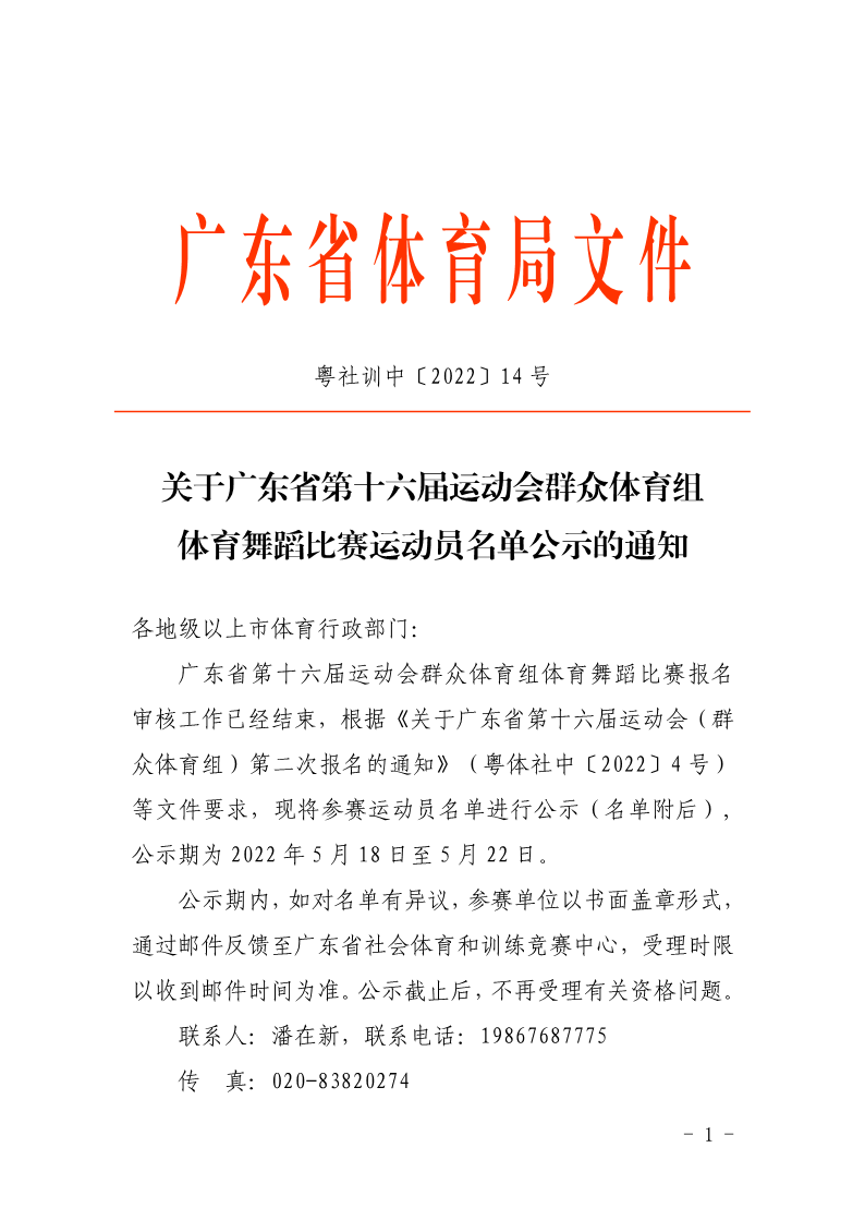 关于广东省第十六届运动会群众体育组体育舞蹈比赛运动员名单公示的通知 来源: 发布时间:2022-05-18 17:00:56 浏览次数: 次 【字体:小 大】 终审:HYP 点赞 收藏 分享到: 【打印正文】