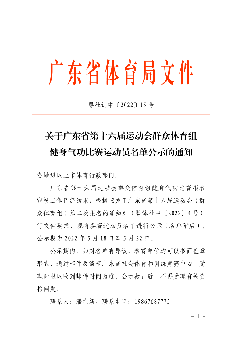 关于广东省第十六届运动会群众体育组健身气功比赛运动员名单公示的通知 来源: 发布时间:2022-05-18 17:00:39 浏览次数: 次 【字体:小 大】 终审:HYP 点赞 收藏 分享到: 【打印正文】